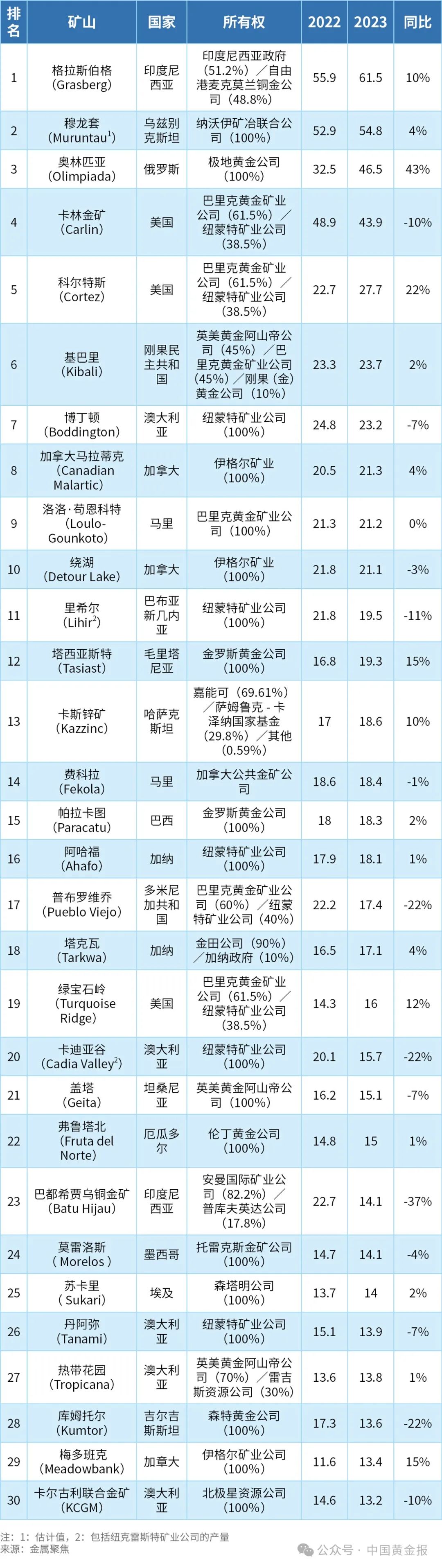 黄金年产量全球之最在哪里?全球黄金生产矿山30强