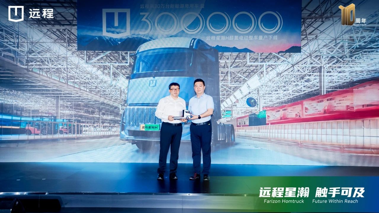 同日,远程新能源商用车第30万台新能源商用车——远程星瀚H醇氢电动牵引车正式下线,并在活动现场交付安能物流,此举也标志着远程星瀚H真正进入用户价值兑现时刻。