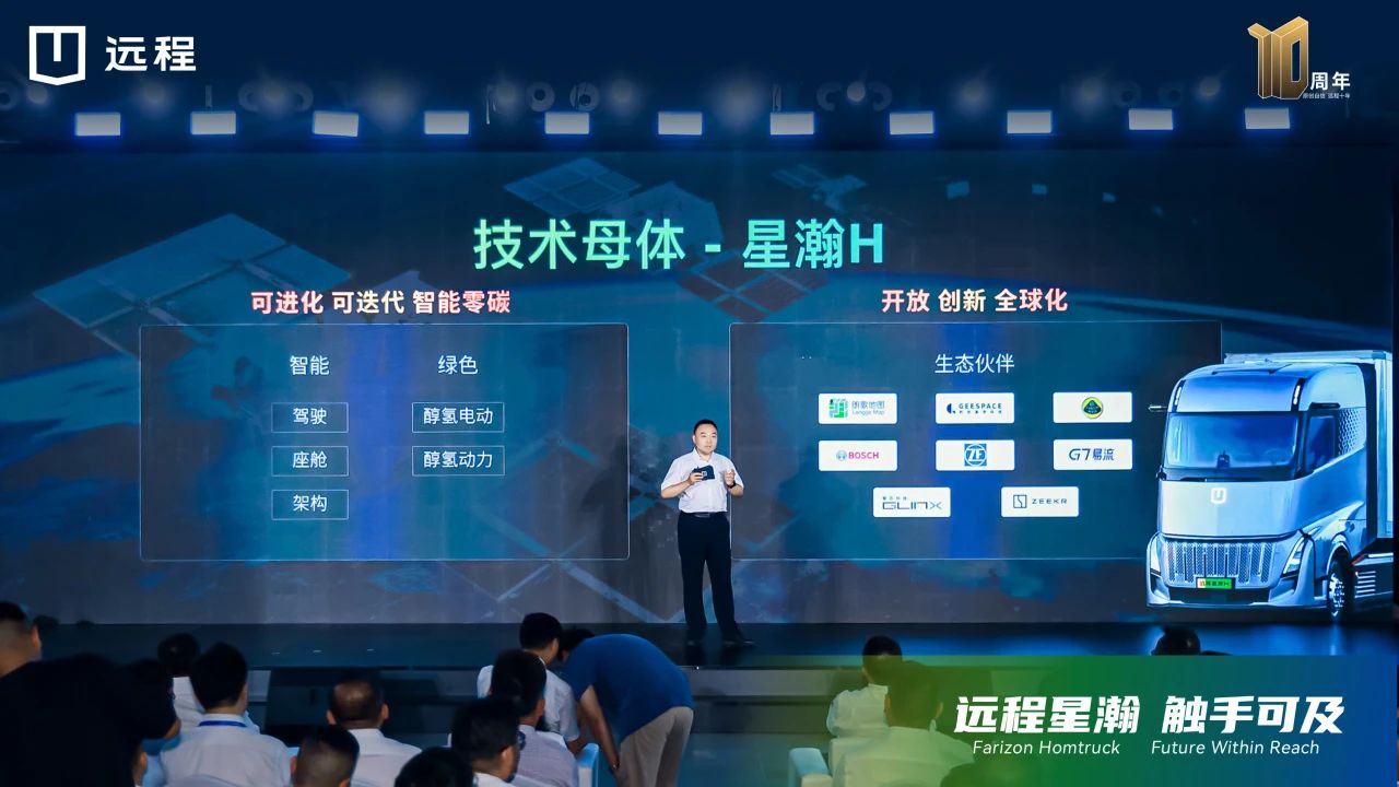 在科技远程与生态远程的全面赋能下,远程星瀚H正向开发,打造可进化、可迭代的智能零碳技术母体,同时依托吉利的科技资源,链合生态伙伴,构建全球化创新开放平台。集成智慧座舱、智慧架构、高效节能三大设计,以醇氢电动为驱动力,远程星瀚H将为行业用户带来零碳陆运新体验。