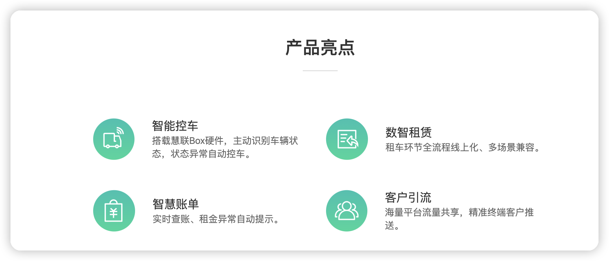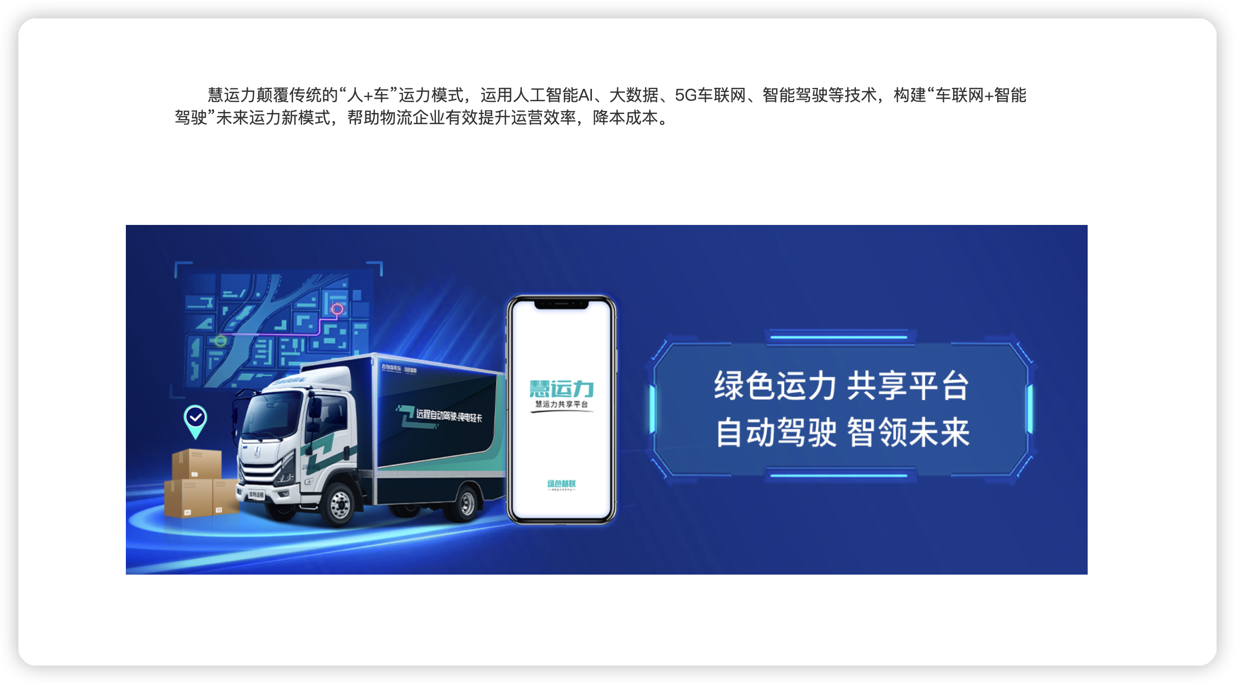 绿色慧联 时间 :2023-10-23 16:20:52点击 : 绿色慧联 远程商用车旗下的重要绿智运力公司 行业的标杆 打造出来了全新的生态 返回回首页 上一案例:经纬纵横集团,全面启动 下一案例:万物友好
